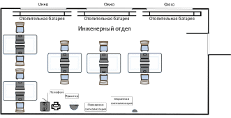 Рисунок 3.1 – Схема размещения компонентов ИС в инженерном отделе