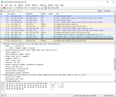 Рисунок 3.6 – Сканирование сетевого трафика в программе Wireshark