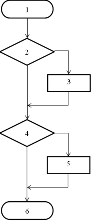 – критерий команд (C0): (вх, вых) = {(30, 0)} - все операторы пути 1-2-3-4-5-6;