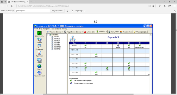 – информация об открытых TCP и UDP портах (рисунок 3.7);