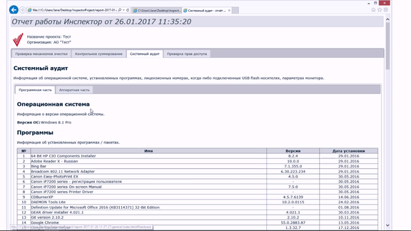 Рисунок А.6 – Фрагмент работы программы “Сканер-ВС” с информацией о ПО