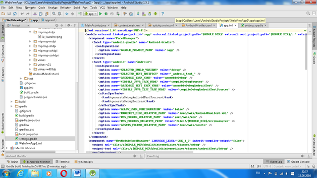 Каждый модуль имеет свой файл build.gradle, который определяет конфигурацию построения проекта, специфичную для данного модуля. Так, если мы посмотрим на содержимое папки app, то как раз найдем в ней такой файл. На начальном этапе данные файлы не столь важны, достаточно лишь понимать, для чего они нужны.