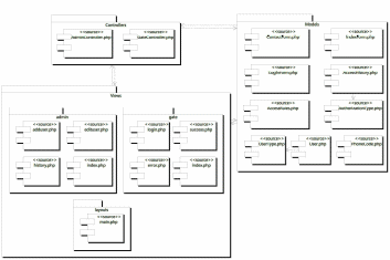 На представленной диаграмме все компоненты разделены на три взаимозависимых блока согласно шаблону проектирования: models, controllers, views. Блок models содержит в себе классы, описывающие модель базы данных. Блок controllers содержит в себе классы, которые обеспечивают связь между пользователем и системой. Блок views разделен на подразделы, каждый из которых содержит в себе элементы отображения данных (элементы пользовательского интерфейса).