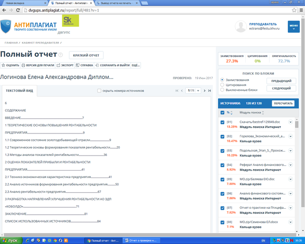 Отчет предоставлен сервисом «Антиплагиат» - http://dvgups.antiplagiat.ru