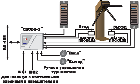 Рисунок 6.1 – Структурная схема подключения «С2000-2» для управления турникетом