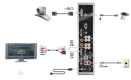 технология People+Content™ для одновременного использования двух дисплеев (телевизионного для отображения участников и XGA для обсуждаемых документов);