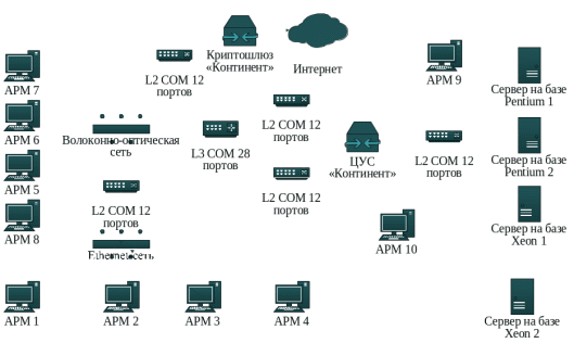 Рис. А.2 – Топология локальной вычислительной сети учебной ИСОП