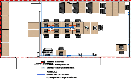 Приложение Б. Размещение элементов учебной ИСОП относительно границ контролируемой зоны