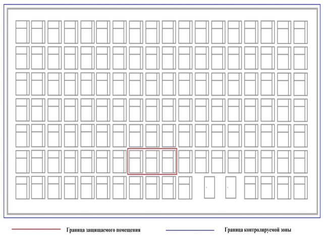 На входе в здание расположен пост охраны, организован пропускной режим. Таким образом, границей контролируемой зоны является мнимая линия, проходящая по периметру здания. Контролируемая зона – это территория объекта, на которой исключено неконтролируемое пребывания лиц и транспортных средств, не имеющие постоянного или разового доступа.