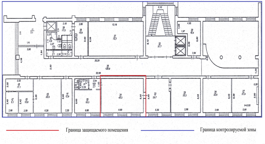 Схема расположения помещения относительно границ контролируемой зоны представлена на рисунке 2.2.
