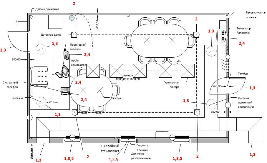 Рисунок 2.16 – Схема помещения с найденными утечками речевой информации