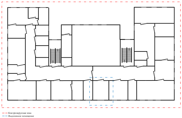 Рис. Б.1 – Размещение ЦОД относительно границ контролируемой зоны на третьем этаже здания Администрации.