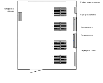 Помещения ЦОД находится на 3 этаже здания. Вход в помещение осуществляется через деревянную дверь, которая запирается на замок.