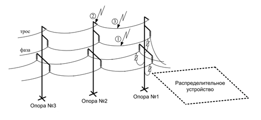 удары молнии в опоры (точка 2 на рисунке 4.1);