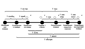 Нормативное время с момента поступления вызова о пожаре до подачи первого ствола составляет в городе - 10 минут, в сельской местности - 20 минут. [3]