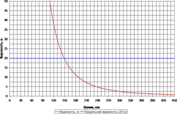 Также, впервые 5 минут, происходит постепенное нарастание опасных факторов пожаров, что и представлено на рисунках 1.8-1.10.
