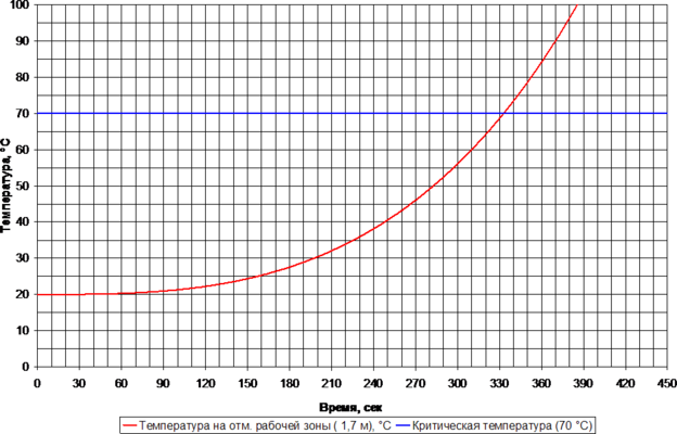 Рисунок 1.8 Изменение температуры в помещении при развитии пожара