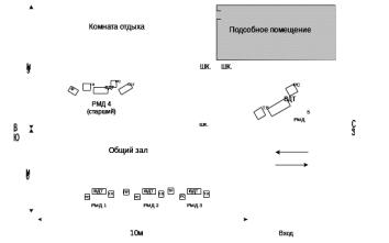 - общий зал, где располагаются рабочие места трех диспетчеров;