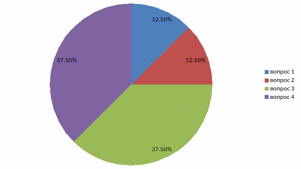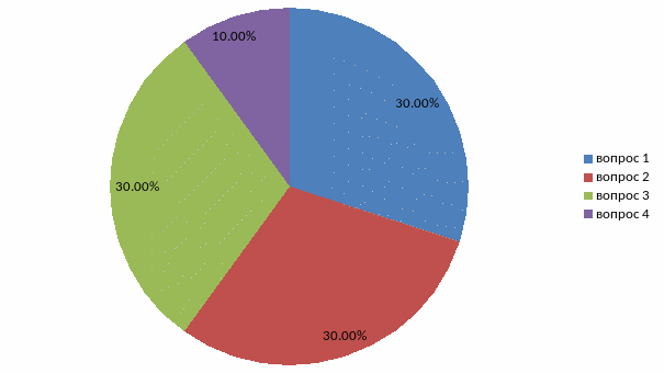 Рисунок 4 показывает, что все вопросы в данной фазе 1, оценили одинаковой оценкой – 3 «хорошо». Общая оценка фазы равна 12.