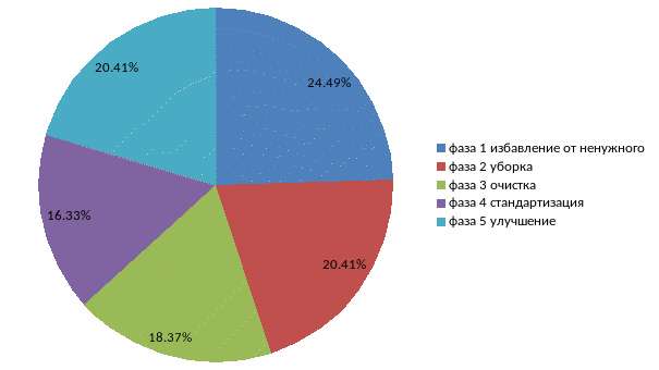 Весьма полезными для нас оказались результаты аудита (см. приложение А) который рассматривает пять аспектов по системе 5S: