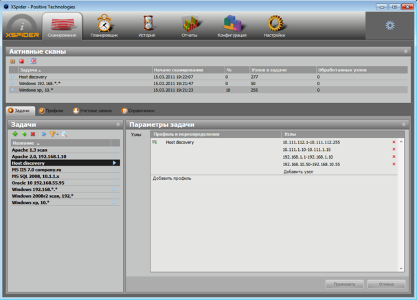 Завершив установку администратору безопасности необходимо будет в список сканируемых хостов добавить адреса для сканирования. Можно добавить сразу диапазон адресов. После того, как список хостов сформирован, нужно выбрать профиль проверки либо из существующих, либо создать новый профиль исходя из собственных предпочтений.