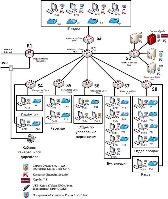 Рисунок А.1 – Схема внедрения XSpider в главном офисе (г. Хабаровск)