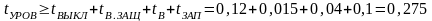 Выдержка времени УРОВ настраивается в полной схеме. Она должна обеспечивать несрабатывание схемы при повреждении на присоединении выключателя. Для всех схем выполнение этого условия является наиболее тяжелым и требует большей выдержки времени: