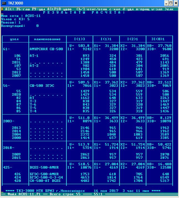 После введения исходных данных были рассчитаны величины токов КЗ в расчетных узлах с помощью программы TKZ 3000, которые представлены на рисунке 1.3.