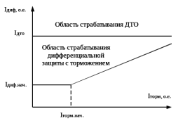 Тормозная характеристика состоит из двух участков и характеризуется следующими уставками: