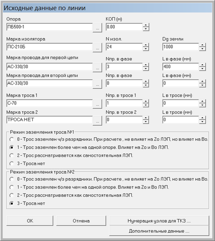 Ввод параметров схем замещения сопротивлений последовательностей (прямой и нулевой) осуществляется в виде таблиц.
