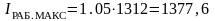 – максимальный рабочий ток трансформатора на стороне НН с учетом перегрузок, А;