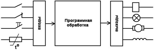 Основными элементами схемы программируемого логического контроллера являются входы и выходы. Дискретный вход устройства обеспечивает прием одного бинарного электрического сигнала во включенном или выключенном состоянии. Аналоговые электрические сигналы отражают физический уровень тока или напряжения в данный промежуток времени. Они связаны с такими показателями, как скорость, температура, давление, масса и прочие.