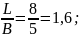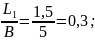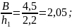 отношение глубины помещения В, к его высоте от уровня рабочей поверхности до верха окна h1: