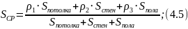 средневзвешенный коэффициент отражения потолка стен и пола (4.5):