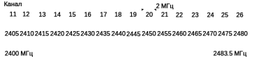 На рисунке 1.4 показан выбор радиоканалов в частотном диапазоне 2400 МГц.