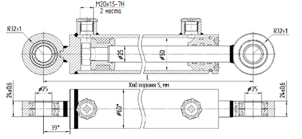 Принимается гидроцилиндр двухстороннего действия МС 50/25x320-3(4).11[2];