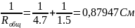 При параллельном соединении резисторов номиналами 4.7 и 1.5 кОм, получим: