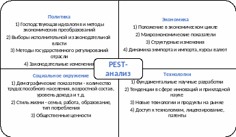 Один из наиболее популярных методов анализа внешней среды это PEST-анализ.