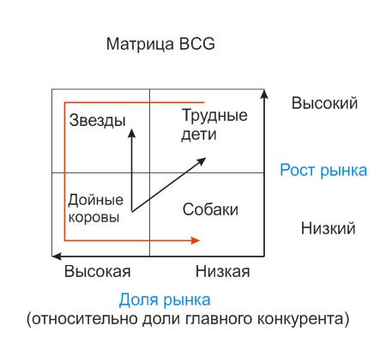 Следующий метод «портфельный анализ» - инструмент, необходимый для оценки компанией своей хозяйственной деятельности, преследующий цель увеличить финансирование в более перспективные направления её деятельности и сократить вложение средств в неэффективные.