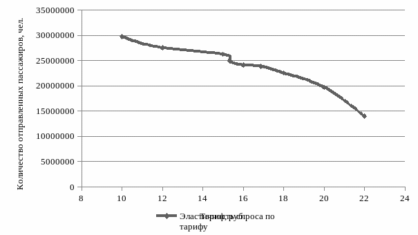 | Год | Тариф, руб. | Количество отправленных пассажиров, тыс. чел. | Эластичность |