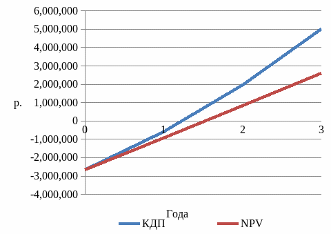| Чистая текущая стоимость, р. за три года реализации проекта | 2 583 116 |