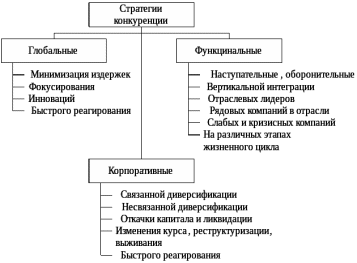 М. Портер 1980-х гг. выдвинул идеи относительно конкурентных стратегий, выведенных из некоторых базовых постулатов. В книге «Стратегия конкуренции» он представил три вида общих стратегий, направленных на повышение конкурентоспособности: лидерства в снижении издержек (поддержание издержек на более низком уровне, чем у конкурентов); дифференциации (как производство уникальной продукции); фокусирования (как сосредоточение на определенной группе покупателей) [16].