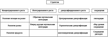 - стратегия интегрированного роста: обратная вертикальная интеграция; вперед идущая вертикальная интеграция;