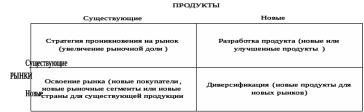 - диверсификация - разработка новых продуктов для обслуживания новых рынков.