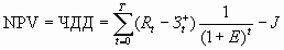 Если в течение расчетного периода не происходит инфляционного изменения цен или расчет производится в базовых ценах, то величина ЧДД для постоянной нормы дисконта вычисляется по формуле: