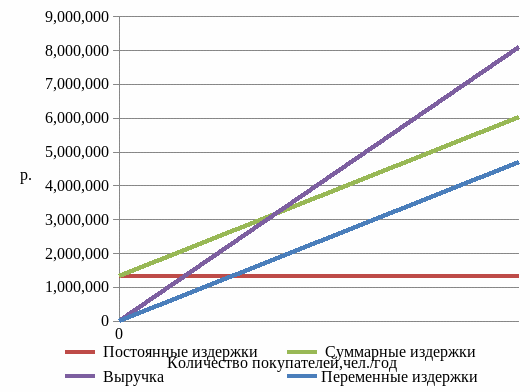 Точка безубыточности - минимальный объем производства и реализации продукции, при котором расходы будут компенсированы доходами, а при производстве и реализации каждой последующей единицы продукции предприятие начинает получать прибыль.