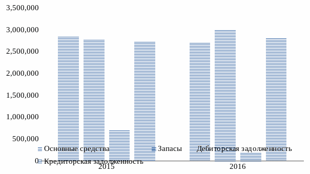 За период 2015-2016г. предприятие снизило свою хозяйственную и финансовую деятельность, о чем свидетельствует уменьшение валюты баланса на 8,95%. Структура актива баланса изменилась. Активы предприятия уменьшились за период. Так, доля внеоборотных активов снизилась на 5,69 % или на 167 394 тыс. р. Наибольший удельный вес в оборотных активах занимают запасы и за анализируемый период они увеличились на 7,99 %. Наблюдается уменьшение дебиторской задолженности на 72,61%, что является, с одной стороны, положительным фактором и говорит о том, что состояние расчетов с покупателями улучшилось, но с другой стороны, рассматривается как негативная тенденция, потому что резкое ее уменьшение, возможно, является результатом снижения объемов реализации товаров и услуг вследствие потери покупателей, путем постоянного кредитования.