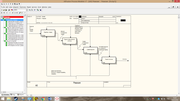 Процесс ревизии изображён на рисунке 4 диаграммой IDEF0 «AS-IS». Процесса ревизии предоставлен в приложении А.