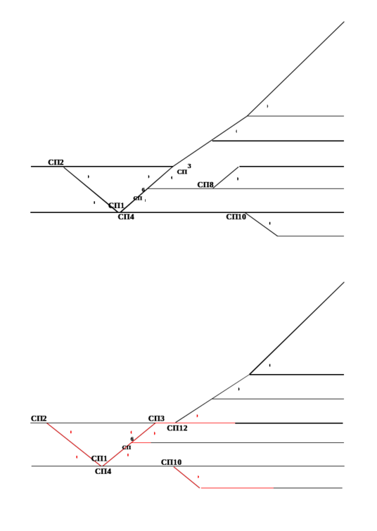 1 этап. На расстоянии 41 м от СП2 разбирается РШР на деревянных шпалах длиной 34,9 м. Затем укладывается новый стрелочный перевод СП2н (рис. 1.5).