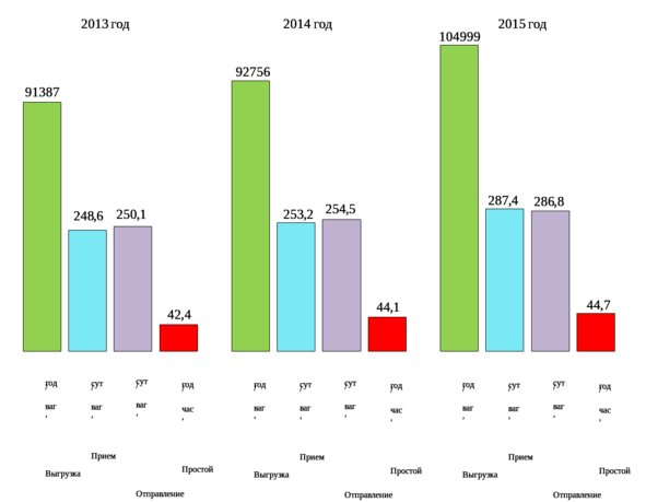 | Прием | 248,6 вагон/сут. | 253,2 вагон/сут. | 287,4 вагон/сут. |